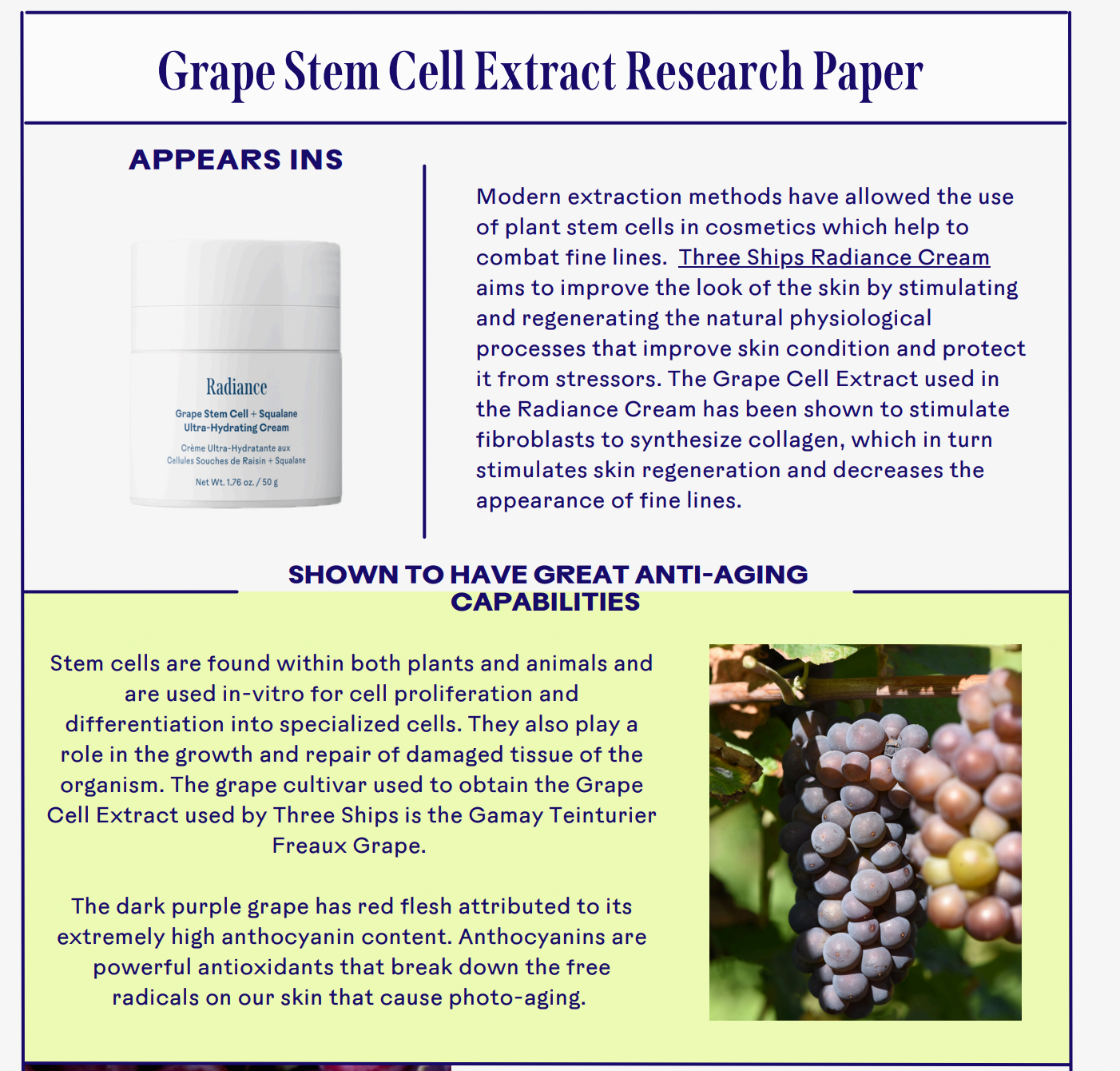 Radiance de Three Ships - Crème ultra-hydratante aux cellules souches de raisin et au squalane